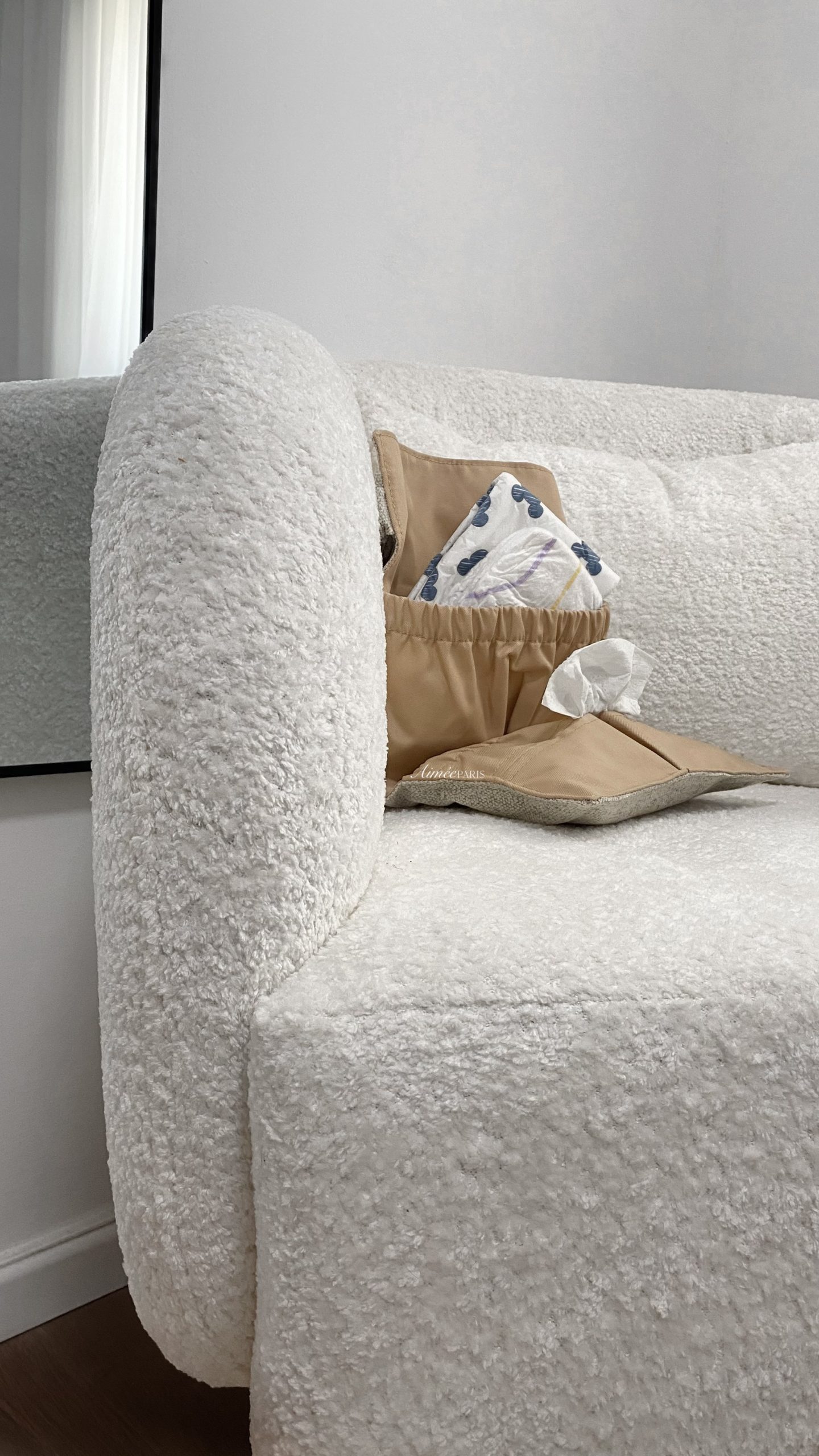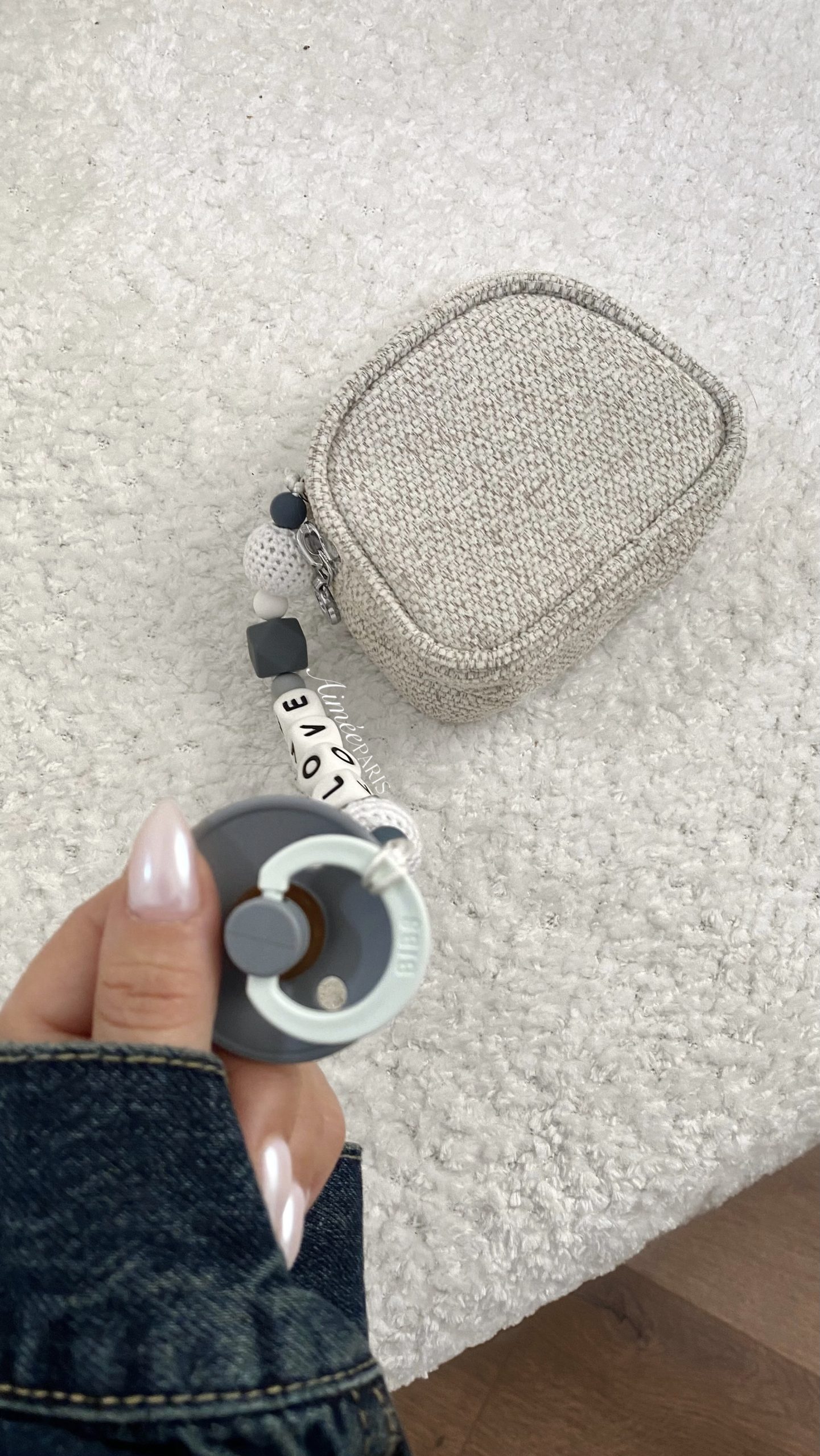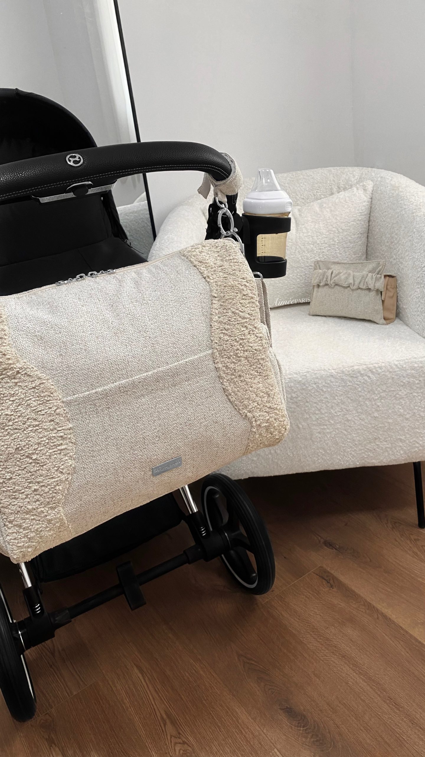 • נרתיק החתלה בעיצוב בלעדי של Aimèe, כולל תא ייעודי לשליפת מגבונים