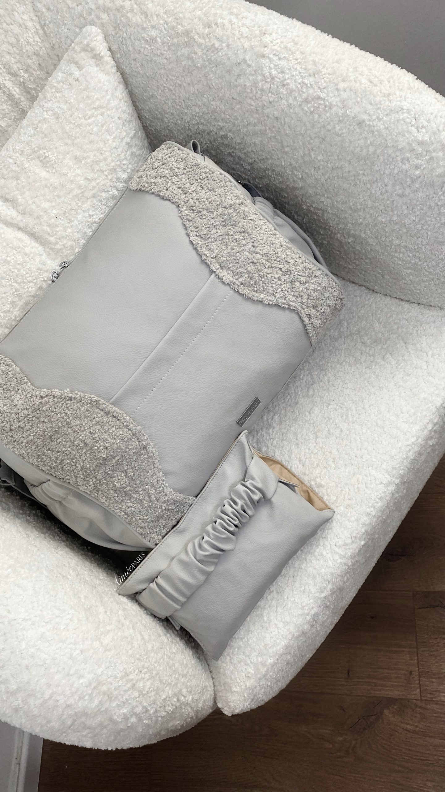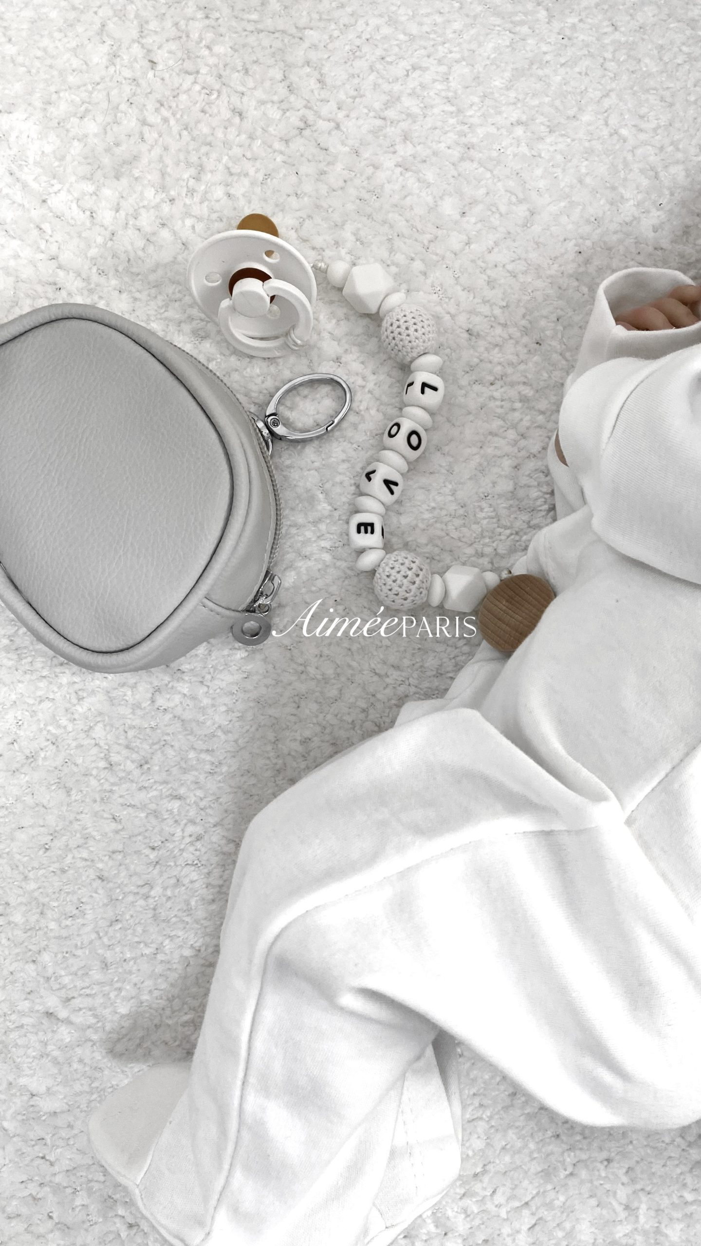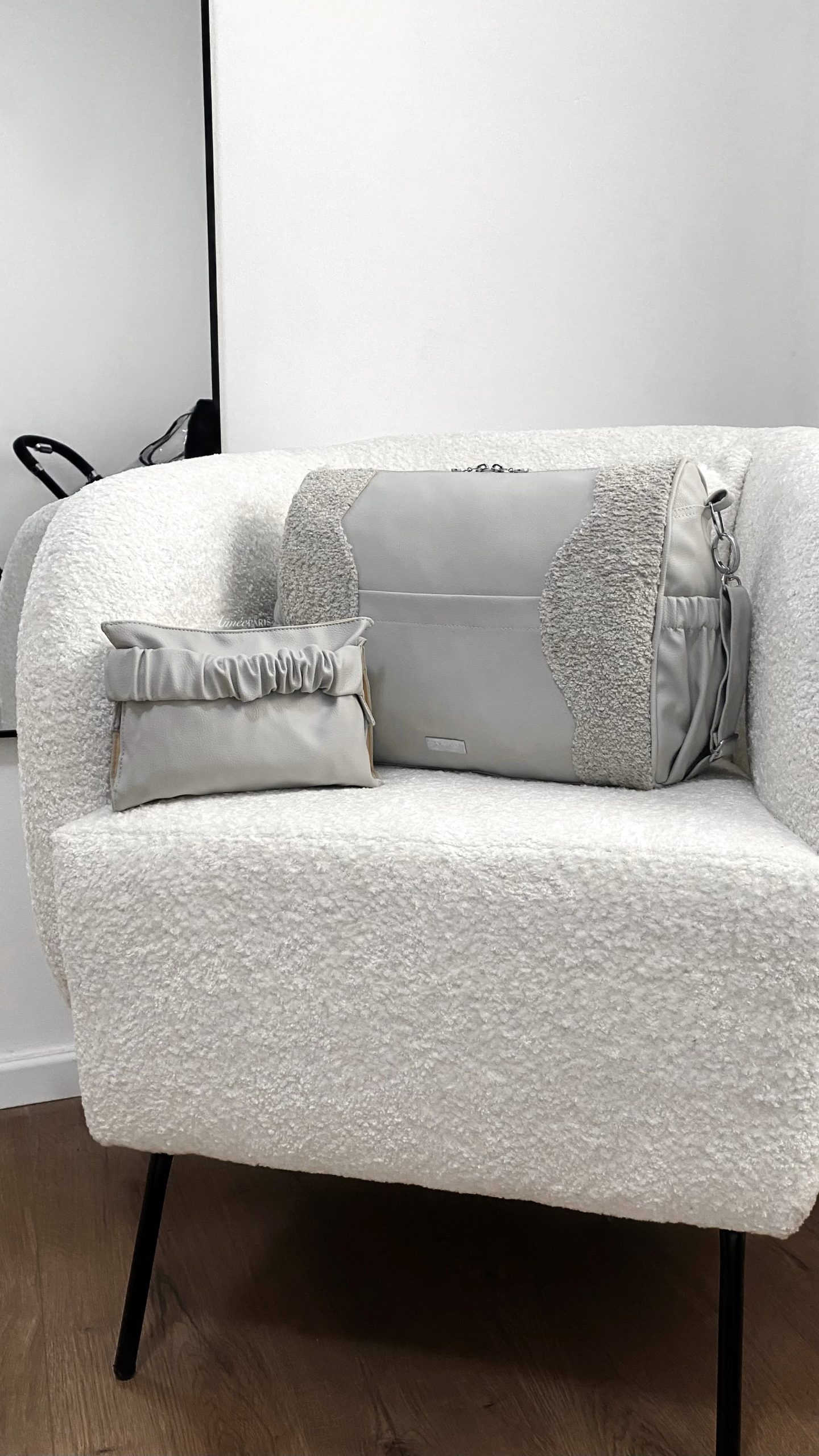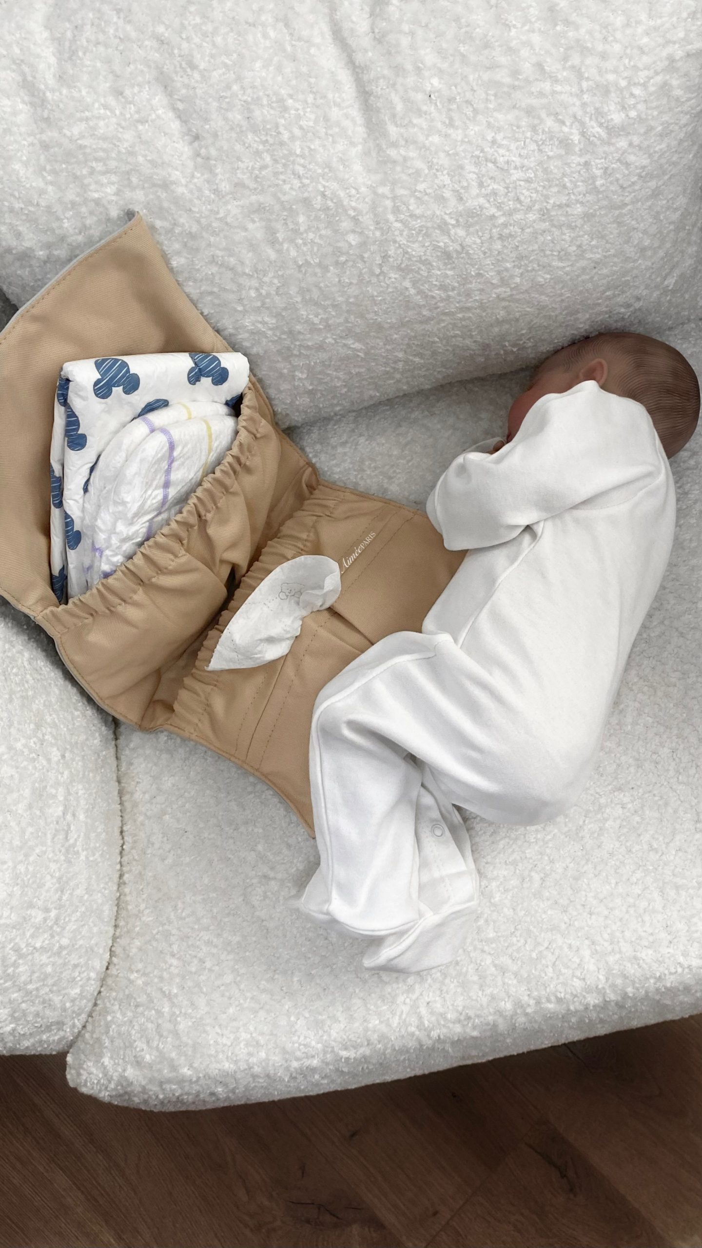 • נרתיק החתלה בעיצוב בלעדי של Aimèe, כולל תא ייעודי לשליפת מגבונים