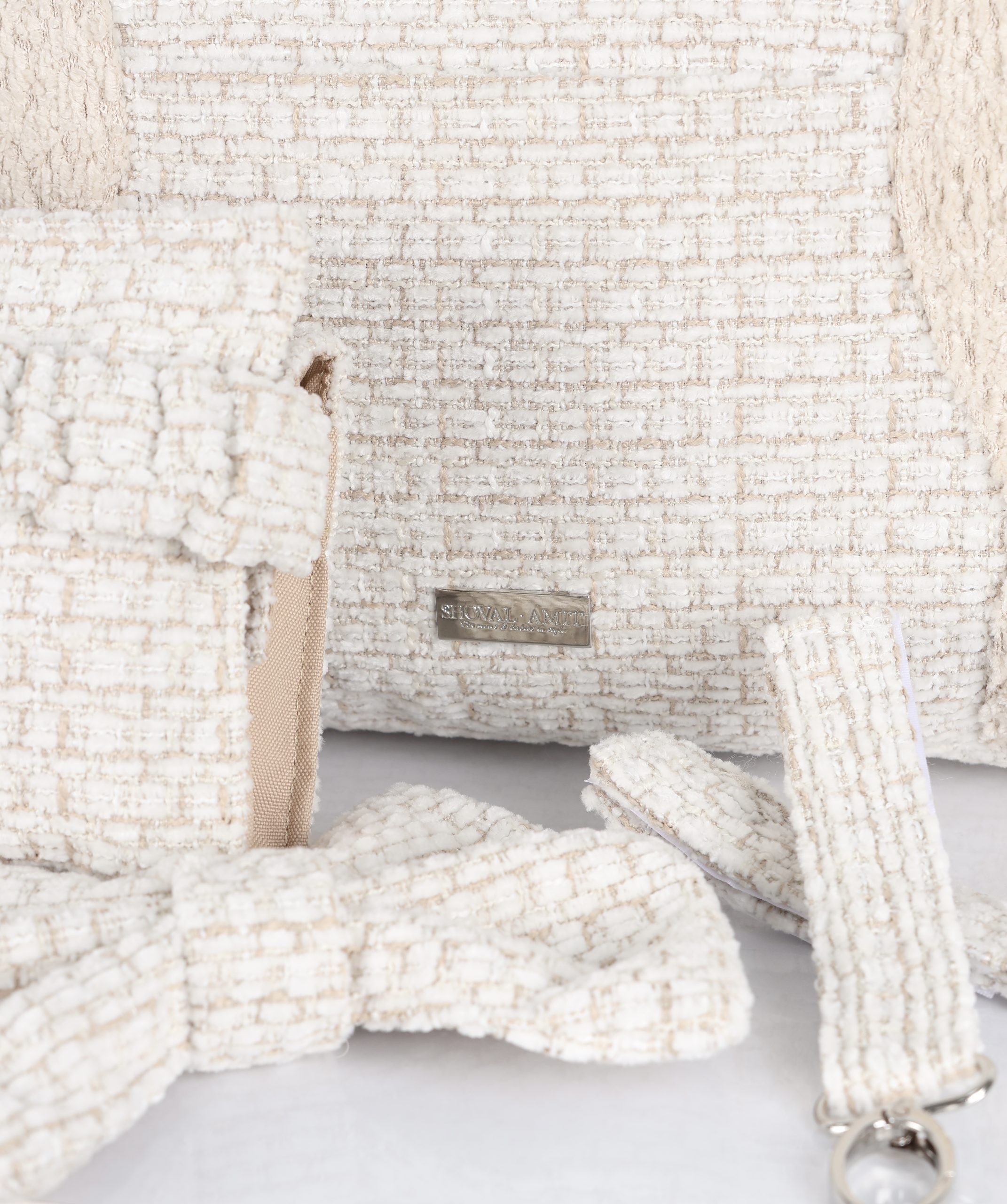 ✓ רצועות גב וצד מרופדות ומתכווננות, מהבד התואם לתיק ולא מסרט כותנה פשוט.