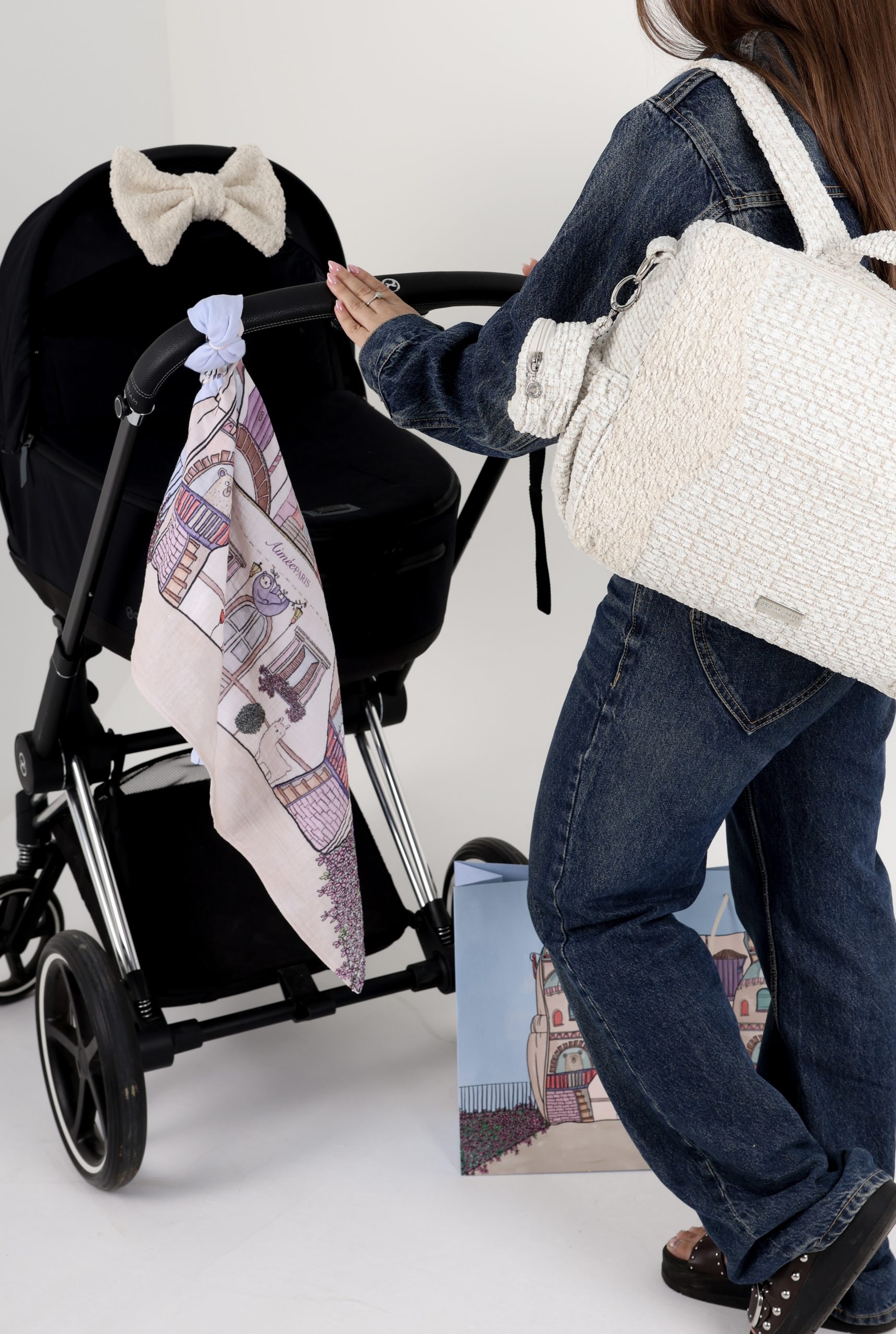 • נרתיק החתלה בעיצוב בלעדי של Aimèe, עם תא ייעודי לשליפת מגבונים