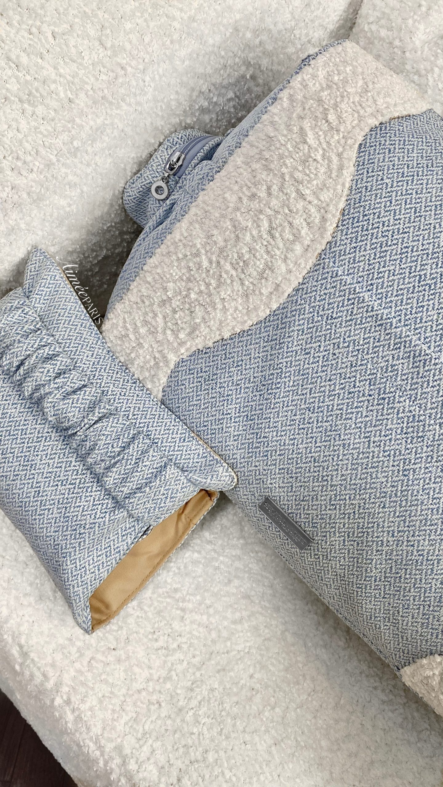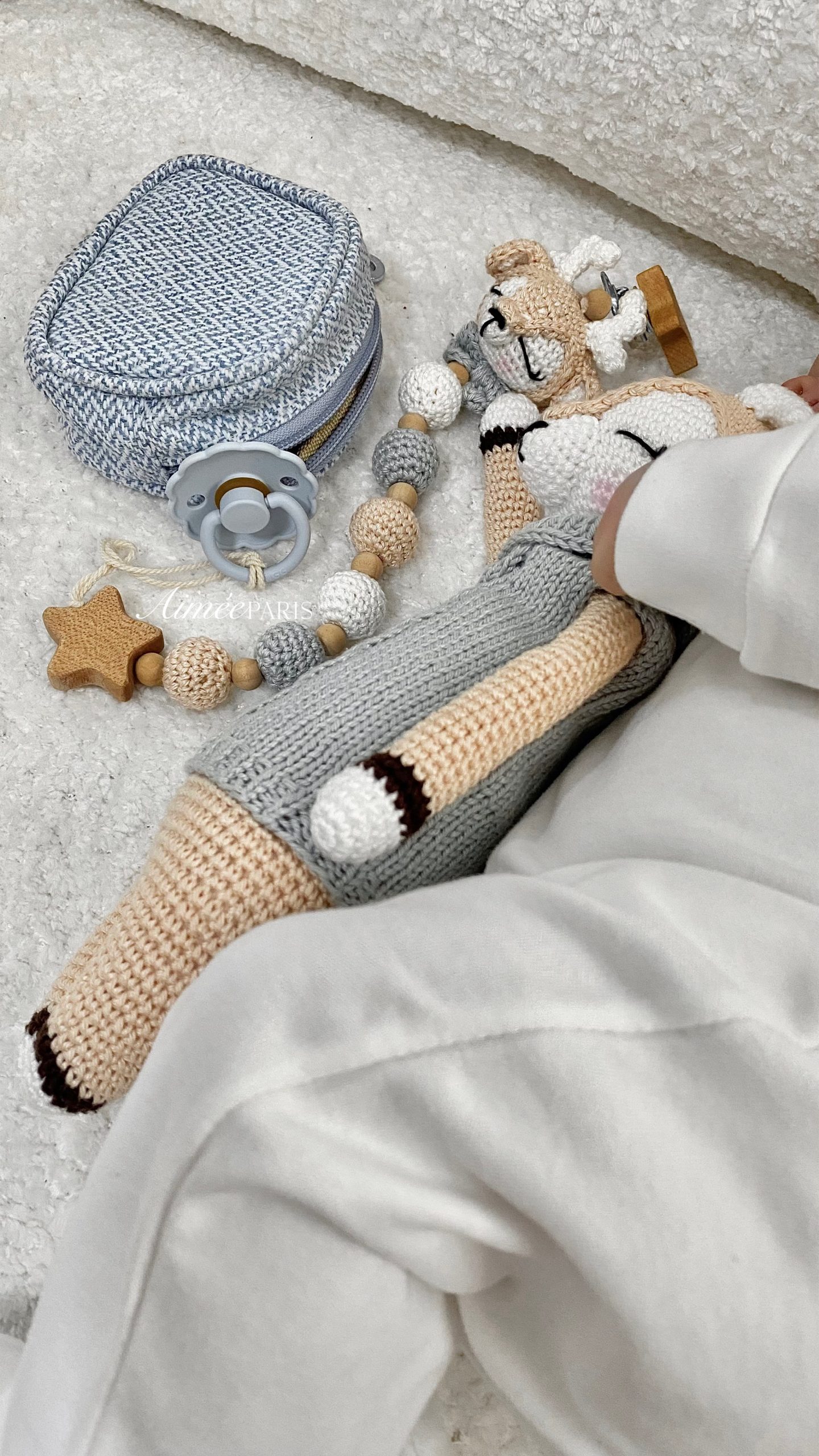 • נרתיק החתלה בעיצוב בלעדי של Aimèe, כולל תא ייעודי לשליפת מגבונים
