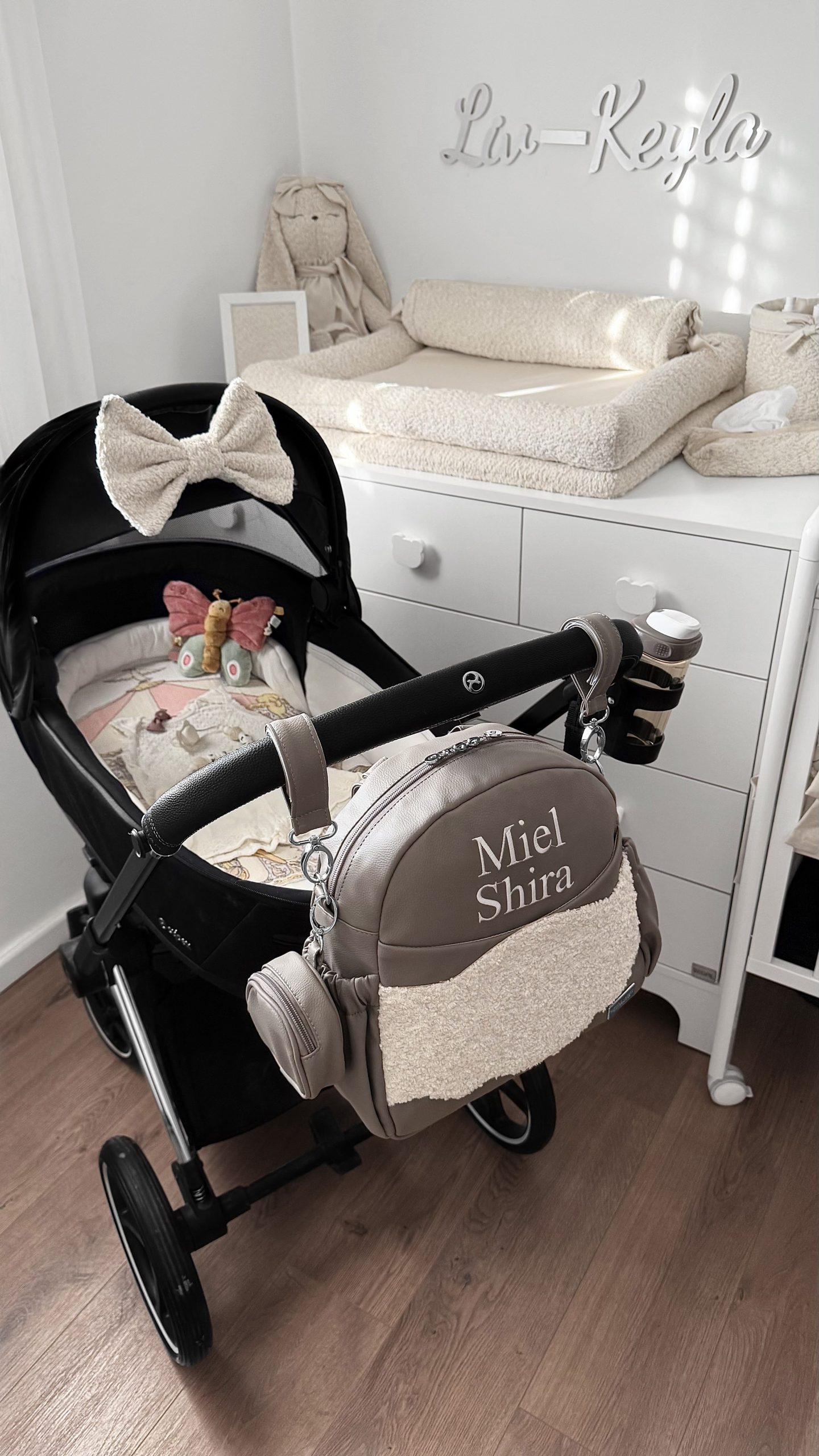 • תיק גן-עגלה בנפח 11L, בעיצוב בלעדי של Aimèe, עם חלוקה פנימית וחיצונית חכמה לתאים מתרחבים לנוחות מקסימלית